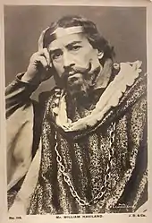 By 1908 he was back with the company of Herbert Beerbohm Tree for whom he played the Curé in The Beloved Vagabond, Antonio in The Merchant of Venice,[17] Polonius in Hamlet, and Dr. Caius in The Merry Wives of Windsor opposite Tree as Sir John Falstaff at His Majesty's Theatre (1908 and 1910).[18][19] In February 1913 he appeared in Ibsen's The Pretenders for Laurence Irving at the Haymarket Theatre.[20] His long career performing Shakespeare's plays ended with his appearance as the Duke of Norfolk in Tree's production of Richard II at Dublin in 1913. With so long an acting career Haviland listed among his recreations "rehearsing".[12]