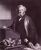 He made a large fortune by his successful practice and by skilful investments, and since he had no family he devoted a great deal of his money to charitable and educational purposes. In 1869 he founded the chair and museum of dermatology in the Royal College of Surgeons, of which he was chosen president in 1881, and which just before his death awarded him its honorary gold medal, which had been founded in 1800 and only awarded on six previous occasions.[1] He also founded a professorship of pathology at the University of Aberdeen and paid for the vast medical library at the Hunterian Museum, London where his bust takes pride of place at the end of the library.