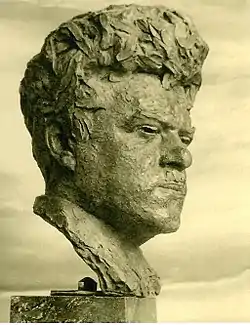 When he returned to Scotland in 1924, Lamb came within the orbit of the Scottish Renaissance. This movement was largely inspired by Hugh MacDiarmid who lived at the time in Montrose near to the sculptor. The aim of this movement was to make the arts central to Scottish life.[21] The rebirth was to be rooted in the great European tradition, but should exemplify Scotland. This was to be achieved through portraying Scots working in their local community and by describing the life of ordinary people. The sculptor grew to accept this tenet and lived and worked for the rest of his life in Montrose.[22]