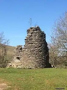William Stewart became a gentleman of the king's bedchamber in May 1594. He helped save the king from the Gowrie Conspiracy at Perth on 5 August 1600 and James VI rewarded him with the forfeited Ruthven castle of Trochrie near Little Dunkeld and the barony of Strathbran.[5] A privy seal letter of November 1600 describes him as a "daily servitor" of the king.[6] He is said to have made additions to Trochrie Castle which featured his initials and heraldry.[7]