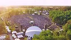 The first Winnipeg folk festival was held August 9 - 11, 1974 at Birds Hill Provincial Park.[7][8] The free concert was staged with funding from the Centennial Committee and the CBC.[9] The event depended on the collective work of many local volunteers so the organizers developed an organizational structure that embodied their philosophy that everyone contributing was a significant participant.[9][8] Subsequent events built on the foundation of this initial idea creating a model that heavily influenced the operation of other similar festivals in Canada, particularly the Vancouver Folk Music Festival and the Edmonton Folk Festival.[9][10]