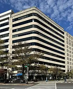 The Wire Building is an historic structure located at 1000 Vermont Ave NW at the intersection of Vermont and K Streets, in Downtown Washington, D.C. It was listed on the District of Columbia Inventory of Historic Sites in 2012 and on the National Register of Historic Places in 2013. The building was designed by architect Alvin L. Aubinoe from the architectural firm of Aubinoe and Edwards and built between 1949 and 1950.[2] It is a twelve-story structure, rising to a height of 155.6 feet (47 m).[3]