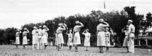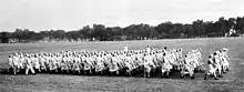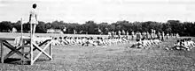 The WAAC was modeled after comparable British units, especially the ATS, which caught the attention of Army Chief of Staff George C. Marshall.[5][6] In 1942, the first contingent of 800 members of the Women's Army Auxiliary Corps began basic training at Fort Des Moines Provisional Army Officer Training School, Iowa. The women were fitted for uniforms, interviewed, assigned to companies and barracks and inoculated against disease during the first day.[7]
