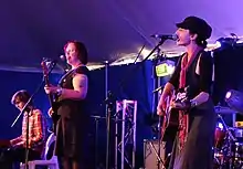 Also in 2002 they were invited by ABC's Radio National to represent Australia at the European Broadcasting Union's International Folk Festival in Hamburg.[5] Lucas recalled "[w]e were a bit different… it was kind of scary, but it was really good. We got a really good response. We got in the local paper. We got to meet the Mayor of Hamburg town. We couldn’t understand what he was saying to us, and he couldn’t understand us either, so we had a great time".[5] During the following year they performed at various Australian festivals and at venues across the country.[5] A proposed appearance at the 2003 Shanghai Spring International Music Festival in May was postponed to the following year due to the severe acute respiratory syndrome (SARS) outbreak.[5][19][20] They toured southern China and were broadcast by radio stations based in Shanghai.[21]