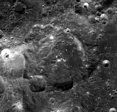 Wood S is adjacent to Wood on the west side. Wood T is a small crater northwest of Wood S, which has a bright ray system.