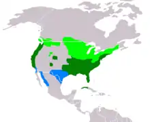 | Range of A. sponsa Breeding range Year-round range Wintering range | |