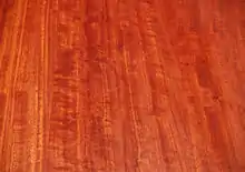 • interlocked - grain which spirals around the axis of the tree, but reverses its direction for periods of years resulting in alternating directions of the spiral grain. On quartersawn surfaces the change in grain direction creates a ribbon stripe figure.