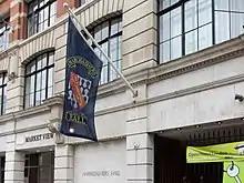 Within the Hall, its cloisters to the right-hand side lead via a circular staircase to the first floor where its Court Room, Committee Room and a luncheon room lead off a reception gallery. The reception gallery leads to the banquet hall, which has a high vaulted ceiling and is entirely oak-panelled. There are also offices for company staff, facilities for catering staff with storage and cellars below the hall, together with accommodation for the Master and the Beadle. The Clerk to the Haberdashers' Company is Brigadier Angus Watson,[4] and the Revd Marcus Walker serves as Honorary Chaplain.[5]