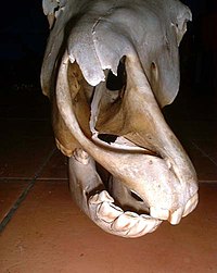 Wry nose is a deviation of the rostral maxilla, meaning that the upper jaw and nose are deviated to one side.[1] This usually causes the nasal septum (the cartilage plate that separates the right and left nasal passageways) to be deviated as well, resulting in obstruction of the airway, and breathing difficulties.[1] Wry nose is most obvious in species with long faces, such as horses and cattle. It is a congenital abnormality, meaning that it is present at birth.[2]In horses two groups of congenital abnormalities, namely malformations or deformations are seen. In the case of the former a frequent result is foetal abortion. These true malformations include, but are not limited to, cleft palate, heart defects, microphthalmia, microencephaly and hydrocephalus. Deformations, include wry nose and flexural limb deformities, and are due to restricted movement of the foetus in-utero (in the womb).