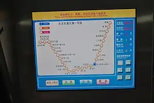 - ↑ "运营线路图". Wuhan Metro. 2010-03-06. Retrieved 2011-08-31.
