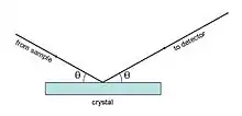 In wavelength-dispersive analysis, the fluorescent X-rays emitted by the sample are directed into a diffraction grating-based monochromator. The diffraction grating used is usually a single crystal. By varying the angle of incidence and take-off on the crystal, a small X-ray wavelength range can be selected. The wavelength obtained is given by Bragg's law: