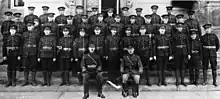 During the First World War, university staff and students from across western Canada wanted the opportunity to serve in the military while retaining their collective university identities.[1] In December 1915, the University of Manitoba branch of the Canadian Officers' Training Corps sent two representatives to the University of British Columbia, University of Alberta, and University of Saskatchewan to lobby for these schools to agree on forming such a unit.[2] This proposition was well received by these schools, along with Brandon College (now Brandon University), who sent representatives to a conference in Edmonton, Alberta, on 15 January 1916.[2] There, it was unanimously agreed to apply for permission from the Minister of Militia and Defence to create two units: XI Canadian Field Ambulance (Western Universities), and the 196th (Western Universities) Battalion.[2]