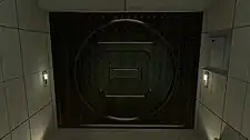 The monolith was later revealed to be a big black door in The Hub of 'Xi'. The door remained locked until the final days of the game.