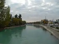 Karşıyaka: Settled in the late 19th century, Karşıyaka is the first expansion of Adana to the east bank of Seyhan River. It is bordered by D400 state road on the north, Seyhan river on the west and Yüreğir Canal on the east. Traditionally an Arabic area, Karşıyaka has seen mass migration of Kurds during the 1990s. Yüreğir District Hall, Adana State Hospital and Asri Cemetery are located in this zone. 14 neighbourhoods of this zone are:Cumhuriyet, Yamaçlı, Seyhan, Haydaroğlu, Bahçelievler, Akdeniz, Güneşli, Anadolu, Dede Korkut, Yunus Emre, 19 Mayıs, Yeşilbağlar, Koza and Başak.