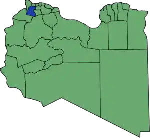 Yafran or Yifren (Arabic: يفرن) is one of the districts of Libya (baladiyat). It is located in the northwest part of the country and its capital is Yafran. Between the 2007 reorganization of districts and the 2013 reorganization, most of its territory was part of Jabal al Gharbi District, although the southwestern part was in Nalut District.[1] In 2013, its territory was placed in Nafusa Mountains District.[2] However, by 2015, it had been restored as a district.[3]