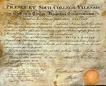 Yale medical diploma awarded Asaph Leavitt Bissell, Class of 1815, signed by school's four professors and Timothy Dwight IV