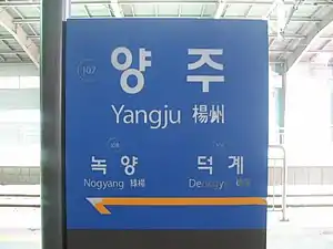 - 1 2 3 "양주역" (in Korean). KRIC. Retrieved 2015-09-15.
