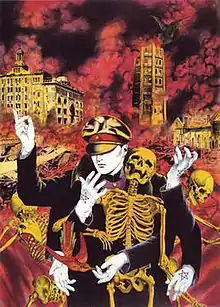 - General Washizaki from the manga/anime Riki-Oh is believed[7][8] to have taken a visual cue from Kyūsaku Shimada's portrayal of Yasunori Katō. General Washizaki appeared in the series only a couple months after the live-action adaptation of Teito Monogatari was released in theaters.