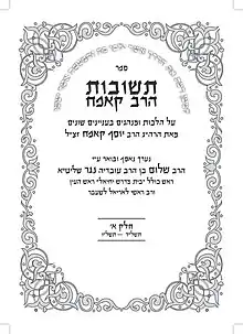 Yosef Qafiḥ (Hebrew: יוסף קאפח pronounced [josef qafiħ], Arabic: يوسف القافح), widely known as Rabbi Yosef Kapach (27 November 1917 – 21 July 2000), was a Yemenite-Israeli authority on Jewish religious law (halakha), a dayan of the Supreme Rabbinical Court in Israel, and one of the foremost leaders of the Yemenite Jewish community in Israel, where he was sought after by non-Yemenites as well.[1] He is widely known for his editions and translations of the works of Maimonides, Saadia Gaon, and other early rabbinic authorities (Rishonim), particularly his restoration of the Mishneh Torah from old Yemenite manuscripts and his accompanying commentary culled from close to 300 additional commentators[2] and with original insights. He was the grandson of Rabbi Yiḥyah Qafiḥ, a prominent Yemenite leader and founder of the Dor Deah movement in Yemen. Qafih was the recipient of many awards, as well as an Honorary Doctorate from Bar-Ilan University.
