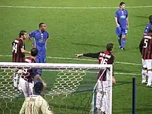 Kaboul signed for Tottenham Hotspur in the Premier League on 5 July 2007 for an undisclosed fee believed to be around £8 million.[25] He quickly became a fan favourite, admired for his power and aggression on the pitch.[26] He made his Premier League debut starting alongside Anthony Gardner at centre-back in a 1–0 loss against Sunderland on the first day of the 2007–08 season.[27] In a following match against Everton, however, Kaboul suffered a hamstring injury and was substituted in the 18th minute, as Tottenham lost 3–1.[28] After missing two matches, he returned to the starting line-up against Fulham on 1 September and scored his first goal for the club, in a 3–3 draw.[29] Kaboul scored again on his European debut for Tottenham, on 20 September, with the first goal in a 6–1 win over Anorthosis Famagusta.[30] Two weeks later, on 1 October, on the club's 125th anniversary, Kaboul scored the equaliser late in stoppage time against Aston Villa to pull Tottenham level at 4–4 and complete a remarkable comeback from 4–1 down.[31] Since joining Tottenham, he rotated in the centre-back position with other defenders.[32] However, Kaboul produced numerous errors that saw him out of the team on three separate occasions after the appointment of Juande Ramos.[33] Kaboul came on as a 102nd-minute substitute for Robbie Keane as Tottenham beat Chelsea 2–1 in the 2008 Football League Cup Final at Wembley Stadium on 24 February 2008.[34][35] However, his return was short-lived as he suffered a knee injury and never played for the club for the rest of the season.[36] In April, Kaboul criticised Ramos for not giving him a chance to play in the first team.[37] He made 29 appearances for Tottenham in his first season at the club, scoring four goals.[38]