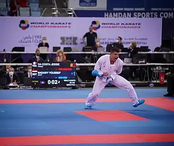 Youssef Badawy (Arabic: يوسف بدوي, born 6 August 2001) is an Egyptian karateka and a world-classed champion. He won the gold medal in the men's kumite 84 kg event at the 2021 World Karate Championships held in Dubai, United Arab Emirates.[1][2] In 2019, he won the bronze medal in the men's kumite 84 kg event at the World Cadet, Junior & Under 21 Championships in Chile, marking his debut at the Worlds and introducing himself as a candidate for the World Champion title.