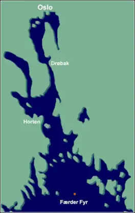 Ytre Oslofjord (lit. 'Outer Oslofjord') is part of a fjord in eastern Norway. The Ytre Oslofjord is the outer part of the Oslofjord which is south of point where the Hurumlandet peninsula splits the fjord between the Drøbak Sound (the strait where the fjord narrows between Drøbak and Hurum) to the east and the Drammensfjorden to the west. North of this point, the Oslofjord is referred to as the Indre Oslofjord (inner Oslofjord). The Ytre Oslofjord stretches south to the Færder Lighthouse.[1]