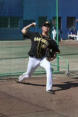 Yukiya Saitoh (齋藤 友貴哉, Saitoh Yukiya, born January 5, 1995 in Higashine, Yamagata, Japan) is a professional Japanese baseball pitcher for the Hokkaido Nippon-Ham Fighters of Nippon Professional Baseball (NPB).[1] He has previously played in NPB for the Hanshin Tigers.
