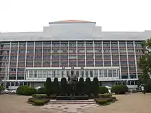 ![]() The front of the library | |