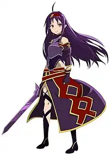 One of the main characters from Volume 7. She was an Imp in ALO, she started dueling anyone promising an 11-hit Original Sword Skill (OSS) if she's defeated: due to her undefeated status she's given the title "Absolute Sword". Eventually Asuna fights her but loses. After the fight Yuuki asks her to help defeating the 27th Floor boss with her guild the "Sleeping Knights" in desire to etch all their names on the Monument of Swordsmen to make a memory. After certain events, which include the defeat of the boss it is revealed that Yuuki has HIV/AIDS and the guild members are patients in terminal state: to test the Medicuboid device, designed supposedly by Rinko Koujiro, in care for future patients. Yuuki forms a strong bond with Asuna, in reminder of her late elder twin sister Aiko Konno. With the time passing Yuuki's condition deteriorates and after she entrusts her OSS «Mother's Rosario» to Asuna before she dies peacefully in ALO, surrounded by over 1000 players from every tribe in the game, including her guild members, Asuna and her friends.