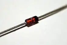 Another mechanism that produces a similar effect is the avalanche effect as in the avalanche diode.[2] The two types of diode are in fact constructed in a similar way and both effects are present in diodes of this type. In silicon diodes up to about 5.6 volts, the Zener effect is the predominant effect and shows a marked negative temperature coefficient. Above 5.6 volts, the avalanche effect dominates and exhibits a positive temperature coefficient.[3]