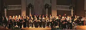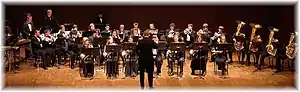 On May 20, 2006, Zenith Brass celebrated its Tenth Anniversary Season with a concert including alumni. Pictured is the combined group of 66 musicians following their performance of Stars and Stripes Forever.