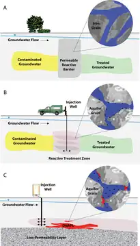 - ↑ Gillham, Robert, John Vogan, Lai Gui, Michael Duchene, and Jennifer Son. "Iron Barrier Walls for Chlorinated Solvent Remediation." In Situ Remediation of Chlorinated Solvent Plumes. Ed. Hans F. Stroo and C. Herb Ward. New York, NY: Springer Science+Business Media, 2010.