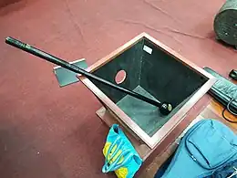 The zhu is played by grasping a wooden stick and using it to strike the top of the zhu's inner bottom surface.