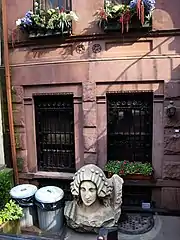 A fragment of the Joseph Urban facade, a female head, can be seen in front of the private home at 52 East 80th Street.[4]