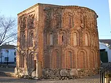 Se trata de una construcción semicircular, que presenta un tramo recto en su parte delantera, correspondiente al presbiterio del primitivo templo religioso. Una bóveda de horno cubre el ábside propiamente dicho, mientras que el cuerpo recto presenta bóveda de cañón. Los materiales empleados en la fábrica son cantos rodados, dispuestos en mampostería y revestidos con ladrillos, y la piedra de granito, aunque secundariamente.