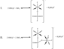 - HF6SO₃Sb + H2O → H2SO4 + HSbF6