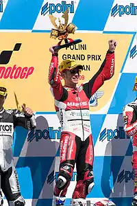 Bautista celebrando la victoria en el GP de Japón 2009