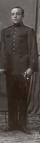 Ingresó en la Academia de Infantería como alumno el 29 de agosto de 1911 y salió con el grado de 2.º teniente el 23 de junio de 1914.[1]