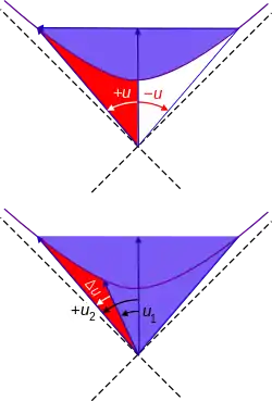 Notar que a diferencia del ángulo circular, el ángulo hiperbólico no se encuentra acotado, tal como sucede con la función ln x, una característica relacionada con la naturaleza no acotada de las series armónicas. El ángulo hiperbólico en posición estándar es considerado negativo cuando 0 < x < 1.