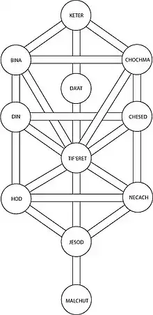 - El misticismo judío representa el árbol de la vida en forma de diez nodos interconectados, como el símbolo central de la Cábala. Está formado por los diez poderes Sefirot en el reino divino. El énfasis panenteístico y antropomórfico de esta teología emanacionista interpretó la Torá, la observancia judía, y el propósito de la Creación como el drama esotérica simbólica de la unificación de las Sefirot, restaurar la armonía de la Creación. Desde la época del Renacimiento en adelante, la Cábala judía se incorporó como una tradición importante en la cultura occidental no judía, primero a través de su adopción por Cábala cristiana, y siguiendo con el esoterismo occidental oculto de la Cábala Hermética. Estos adaptaron sincréticamente la Cábala judaica del árbol de la vida al asociarlo con otras tradiciones religiosas, esotéricas, teologías y prácticas mágicas.