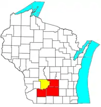 ![]() Mapa de Wisconsin con el Área Estadística Metropolitana Combinada de Madison-Baraboo (CSA), compuesta por: