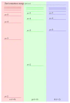 Dado que la energía de ligadura de un electrón en un estado de Rydberg es proporcional a 1/r, y por lo tanto disminuye como 1/n2, el espaciado energético entre niveles adyacentes disminuye como 1/n3, lo que da lugar a niveles cada vez más cercanos que convergen a la primera energía de ionización. Estos estados tan cercanos forman lo que se conoce como la serie de Rydberg.