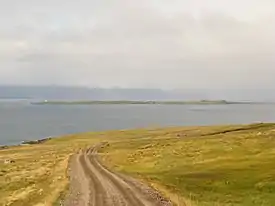 Se trata de una finca privada de una familia, la única de la isla, dedicada a la agricultura. Se encuentra entre las dos secciones del municipio de Ísafjarðarbær, en Vestfirðir.
