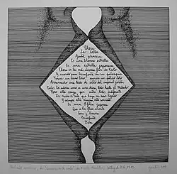 Pintura Triángulo armónico (2007) de Óscar Gacitúa, basado en Canciones en la noche (1913), del poeta Vicente Huidobro (1803-1948).