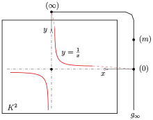 - Si se toma la representación no homogénea de un óvalo que es una cónica como una hipérbola más dos puntos en el infinito y se reemplaza la expresión 1x por 1x3, se obtiene así mismo un óvalo que no es una cónica.