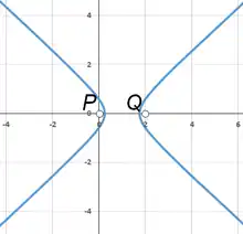 - Si m = -1 y 0 < a < d(P, Q) la ecuación da una rama de una hipérbola, y por lo tanto, no es un óvalo cerrado.