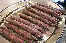 Şiş köftes antes de ser asado.