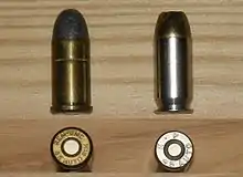 ![]() Dos .45 Auto Rim de la Remington UMC (izquierda) y dos de la Peters Cartridge Company (derecha). | ||||||||||||||||||||||