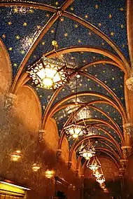 El anexo "Capilla" está ubicado al este de la sección norte de la sala bancaria, conectado a través de dos grandes aberturas rectangulares cortadas a través de la pared medianera en el lado este de la sala bancaria. El diseño es similar al de la sala bancaria, con paredes de piedra caliza y arenisca. Una logia del segundo piso da al extremo norte del primer piso del anexo, y debajo hay un conjunto de puertas dobles que conducen al arco central de la galería a lo largo de la calle 42.[16] Dos candelabros y un patrón de rombo pintado se encuentran en el techo plano, mientras que un friso estampado corre cerca de la parte superior de la pared.[17]