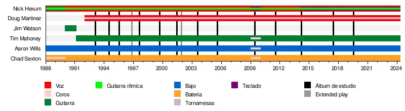 - Nick Hexum: voz, guitarra rítmica (1988-); teclados (2009; 2014-); guitarra (1988-1990)
